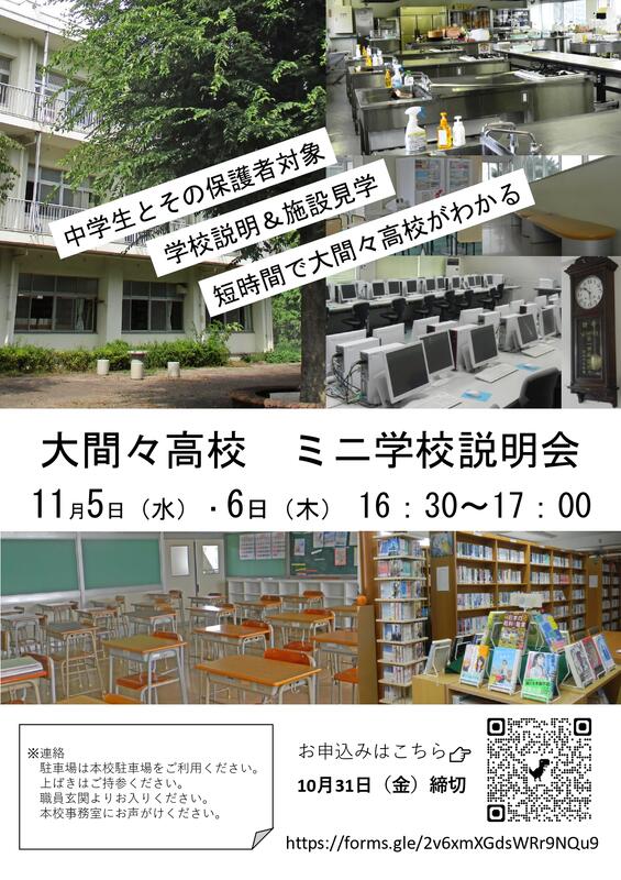 ミニ学校説明会参加フォームURL:https://forms.gle/2v6xmXGdsWRr9NQu9