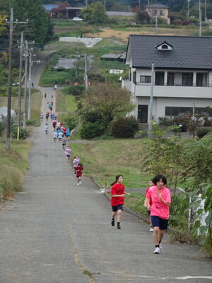 アップダウンの激しいコースでしたが、最後まで懸命に走り抜きました。途中で苦しい表情を見せながらも仲間同士で励まし合い、最後まで走りきる姿が印象的でした。完走後は、PTAの方々からお弁当と飲み物の提供があり、みんなで美味しくいただきました。