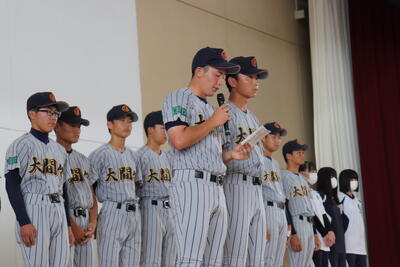 校長先生から激励のお言葉をいただき、その後、キャプテンが大会への意気込みを話しました。